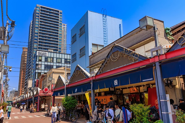 Tsukishima, known as part of Tokyo’s “Shitamachi,” is also one of the components of the Tokyo Bay area, joining districts such as Kachidoki and Toyosu. One of the benefits of Tsukishima is convenient transportation. From Tsukishima Station, strap-hangers can access two subway lines, the Tokyo Metro Yurakucho Line and the Toei Subway Oedo Line. The Yurakucho Line puts Ginza Itchome Station within 4 minutes’ reach; a transfer to the Yamanote Line brings residents to Tokyo Station in just 18 minutes total.