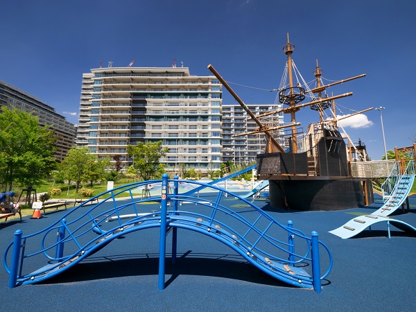 The site of the Athletes’ Village of the Tokyo 2020 Olympic and Paralympic Games has been transformed into a new urban district named “HARUMI FLAG”. On the site, in addition to residences, retail complexes, parks, schools, daycare centers and many other amenities were constructed. As a result, HARUMI FLAG is attracting growing attention as a part of Tokyo that has everything for satisfying urban living. With a full complement of educational services, HARUMI FLAG is a friendly place for couples who are raising children. HARUMI FLAG is surrounded by ocean on three sides, affording a surfeit of scintillating views over Tokyo Bay. Two large parks, “Harumi Port Park” and "Harumi Greenway Park”, include ponds for playing in the water and sweeping green space. On top of that, HARUMI FLAG incorporates hydrogen energy and other leading-edge technologies, making it an eco-friendly urban district of the near future.